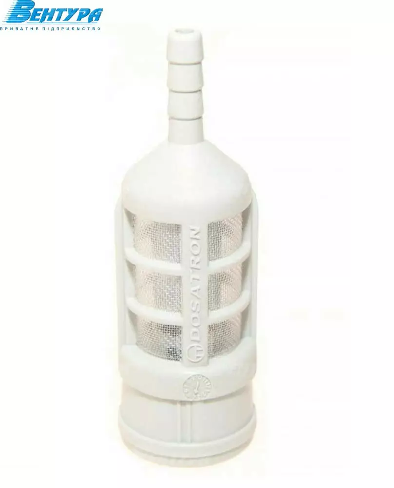 Фильтр Dosatron MPDI206 расположен на конце всасывающей трубки препарата. Кроме того, он оснащен утяжелителем, предотвращающим истечение шланга из емкости с лекарством (он всегда опускается на дно).