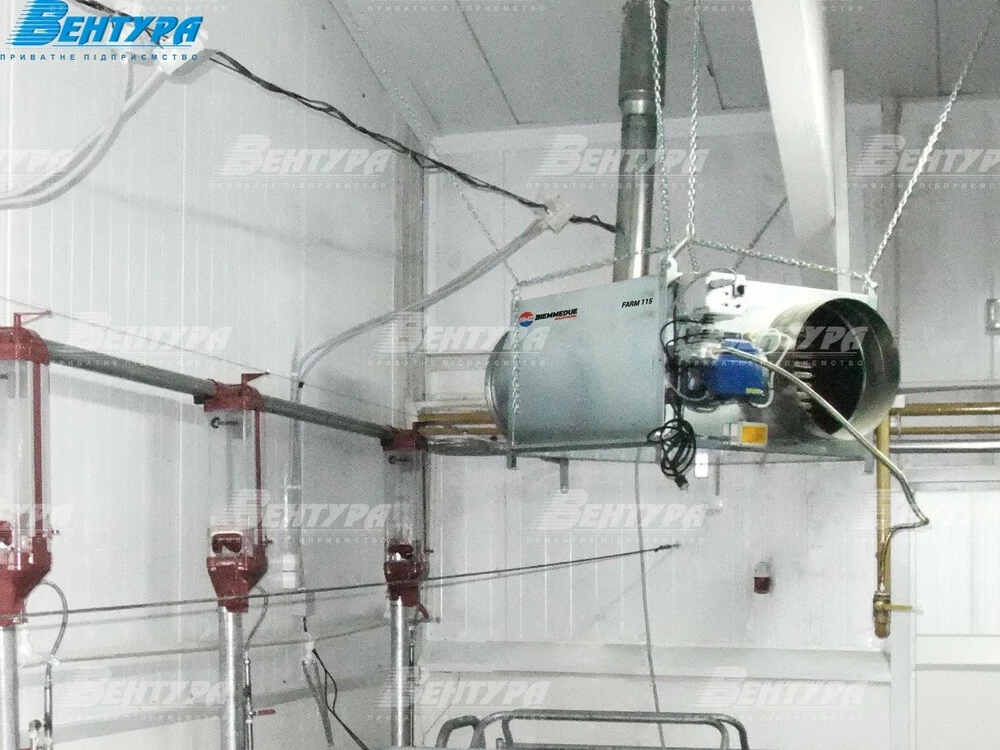 Используется для обогрева складов, ангаров с техникой, больших цехов, ферм, птицефабрик, теплиц, предназначенный для помещений большой кубатуры.